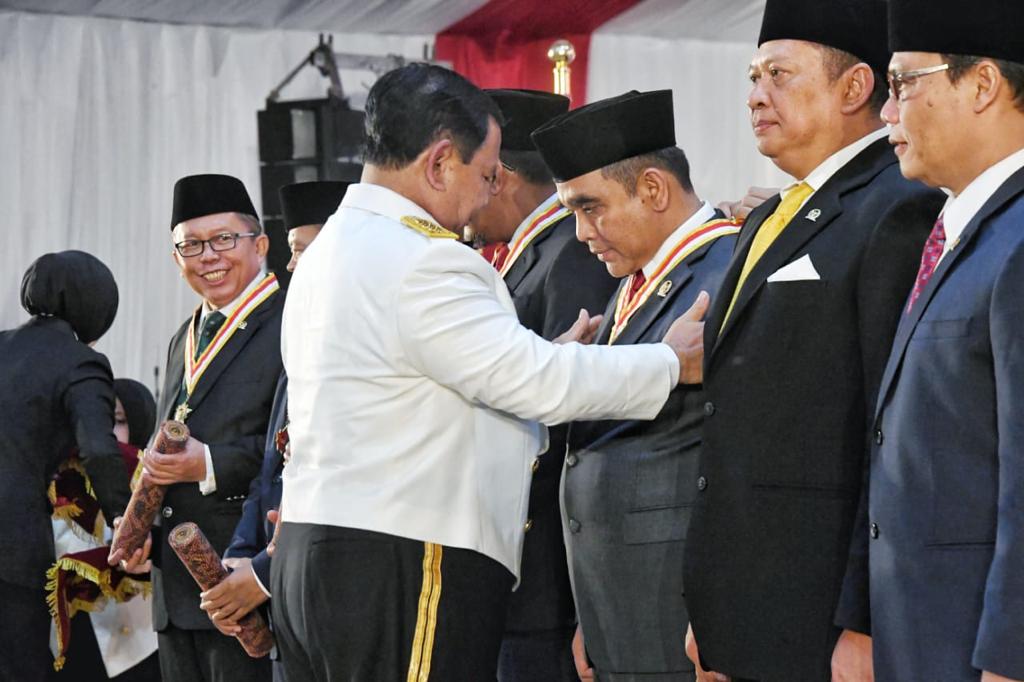 Menhan Prabowo menyerahkan penganugerahan tersebut berupa mendali dan piagam. Atas penghargaan itu, Muzani menyampaikan terimakasih kepada Menhan Prabowo karena pemberian anugerah ini tak terlepas dari komitmen membela bangsa Indonesia serta pendidikan politik yang diberikan Prabowo selama ini.